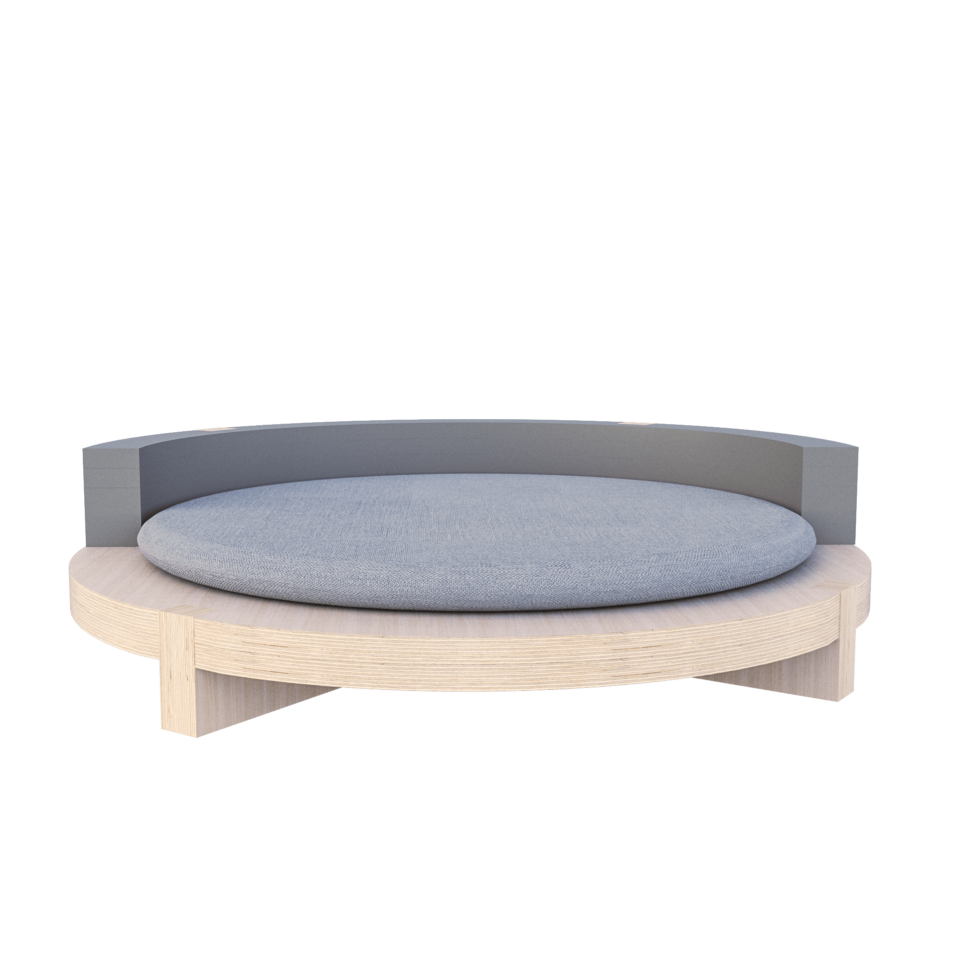 Rina es la cama ideal para tu mascota. Busca ser vista, con sus formas extrovertidas generadas a partir de circunferencias, pero al mismo tiempo se adapta perfectamente a cualquier ambiente, dotándolo de estilo.